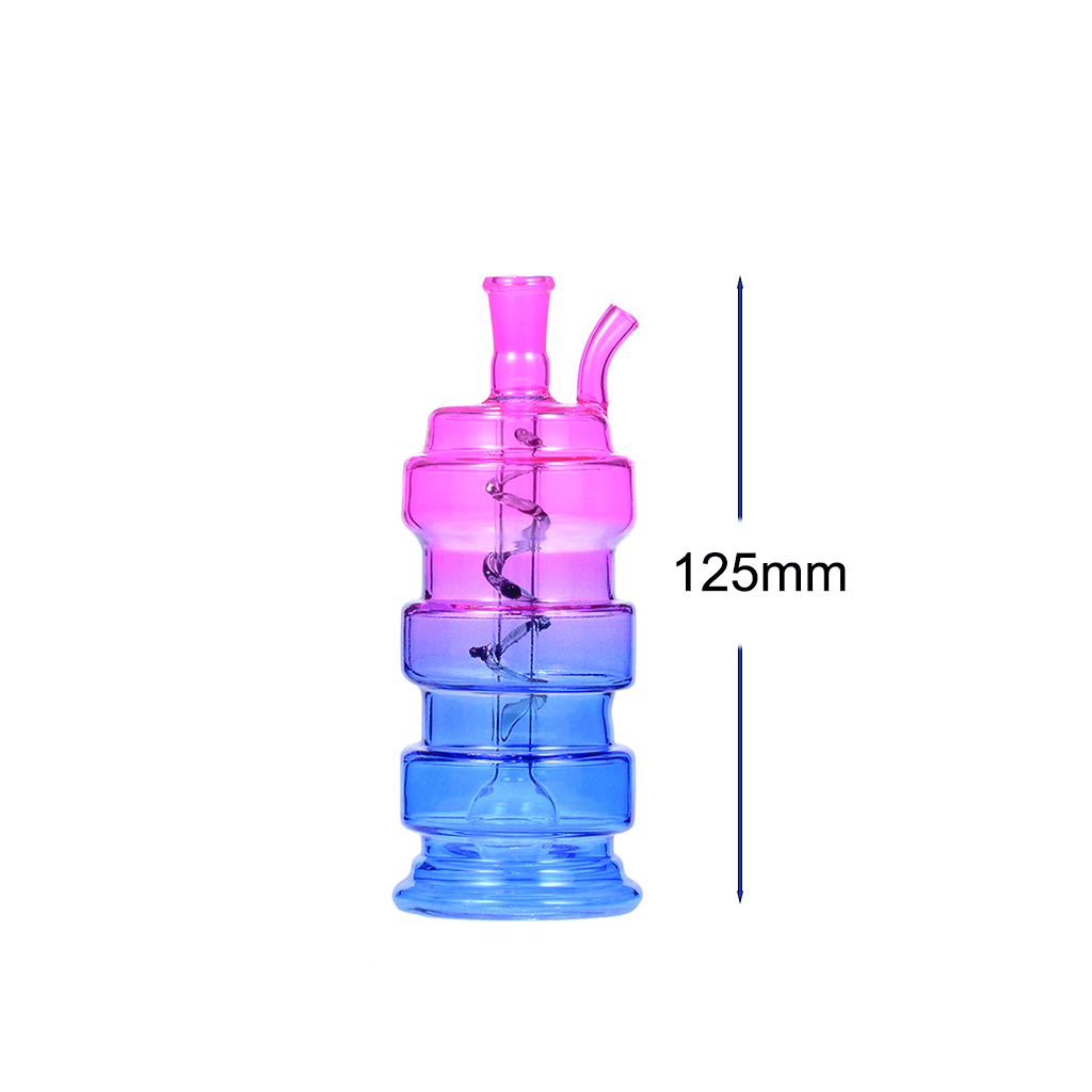 This is a purple layered shaped water pipe glass bubbler, it is 10mm female joint, about 6inch with built in ball perclator. The package includes the glass bubbler, 10mm oil bowl and whip mouthpiece.